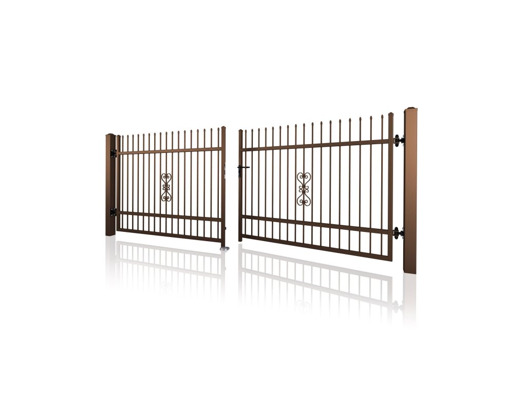 Dvoukřídlá brána STYLE 10-09, kovaná, bezúdržbová, na míru (šířka 1500–6000 mm, výška 1100–1750 mm), hnědá RAL 8014 matná