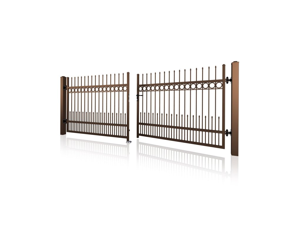 Dvoukřídlá brána STYLE 10-12, kovaná, bezúdržbová, na míru (šířka 1500–6000 mm, výška 1000–1750 mm), hnědá RAL 8014 matná