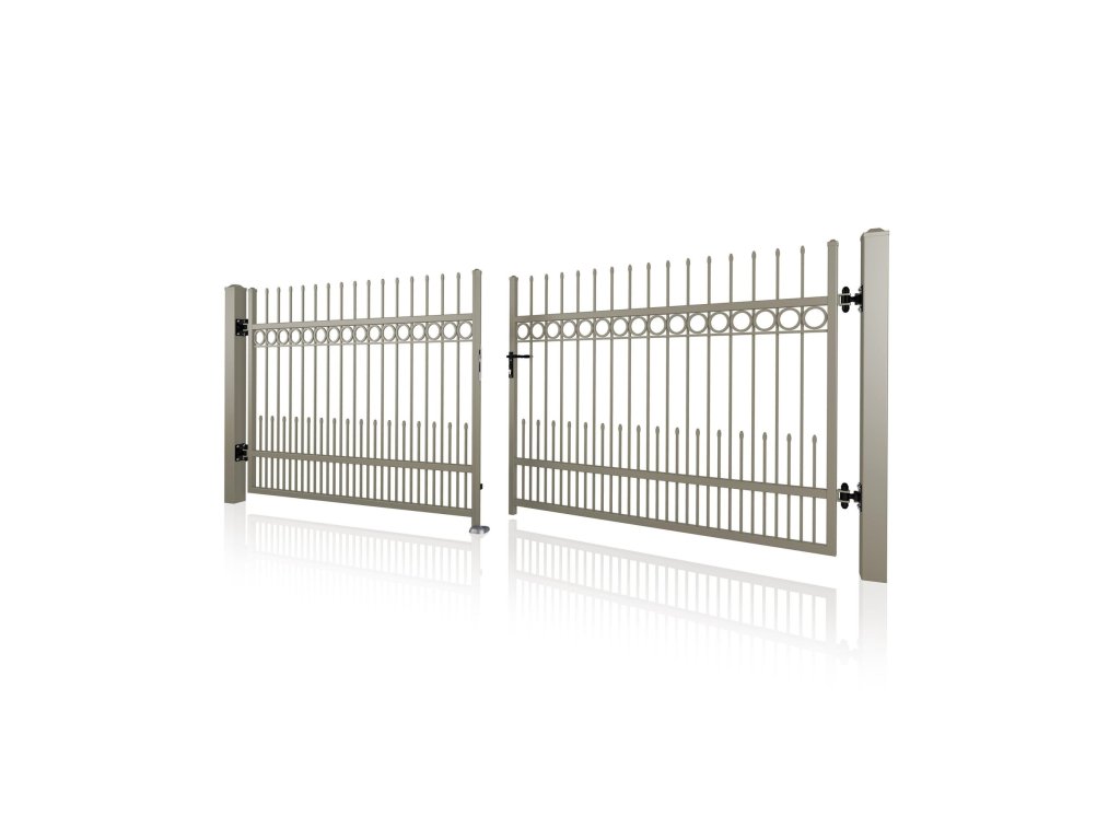 Dvoukřídlá brána STYLE 10-12, kovaná, bezúdržbová, na míru (šířka 1500–6000 mm, výška 1000–1750 mm), šedá RAL 7030 matná