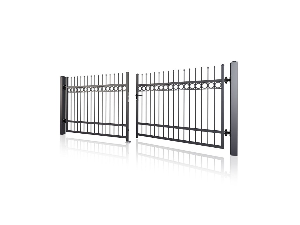 Dvoukřídlá brána STYLE 10-14, kovaná, bezúdržbová, na míru (šířka 1500–6000 mm, výška 1000–1750 mm), černá RAL 9005 matná