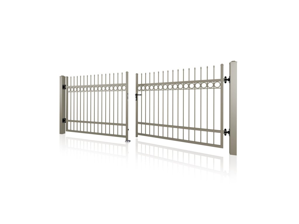 Dvoukřídlá brána STYLE 10-14, kovaná, bezúdržbová, na míru (šířka 1500–6000 mm, výška 1000–1750 mm), šedá RAL 7030 matná