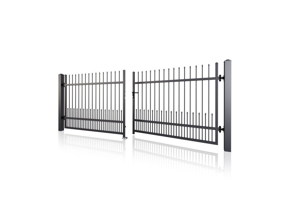 Dvoukřídlá brána STYLE 10-15, kovaná, bezúdržbová, na míru (šířka 1500–6000 mm, výška 1000–1750 mm), černá RAL 9005 matná