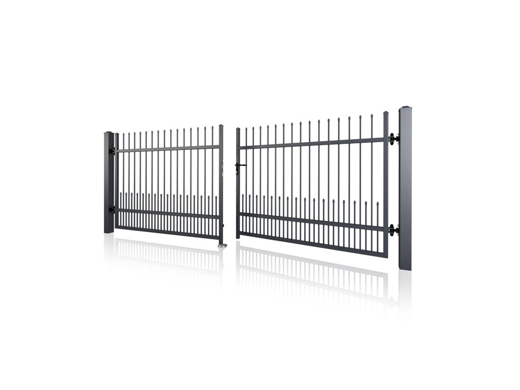 Dvoukřídlá brána STYLE 10-15, kovaná, bezúdržbová, na míru (šířka 1500–6000 mm, výška 1000–1750 mm), černá struktura RAL 9005