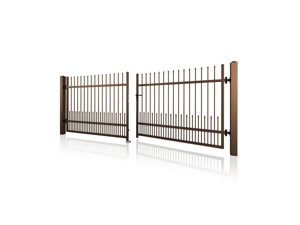 Dvoukřídlá brána STYLE 10-15, kovaná, bezúdržbová, na míru (šířka 1500–6000 mm, výška 1000–1750 mm), hnědá RAL 8014 matná