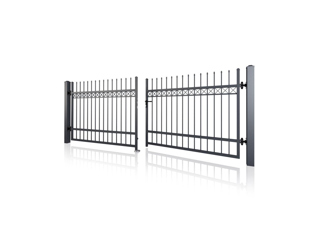 Dvoukřídlá brána STYLE 10-20, kovaná, bezúdržbová, na míru (šířka 1500–6000 mm, výška 1000–1750 mm), černá struktura RAL 9005