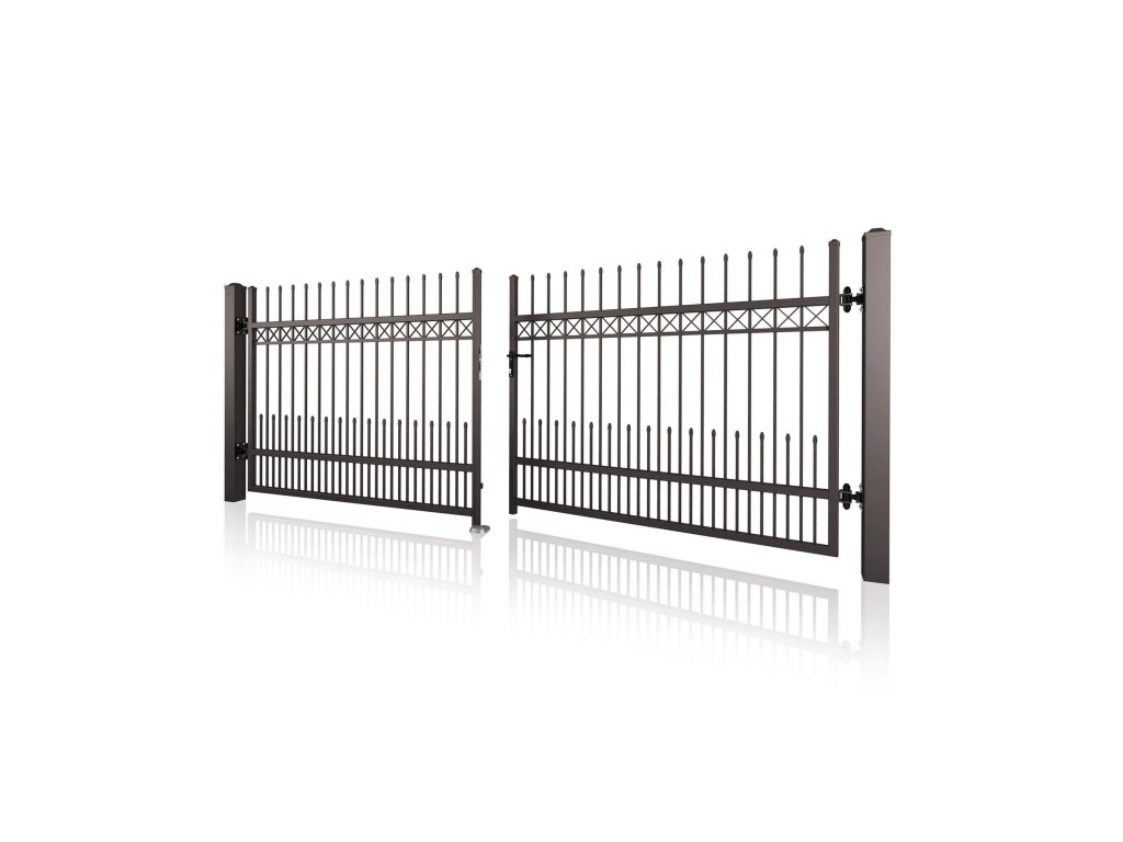 Dvoukřídlá brána STYLE 10-21, kovaná, bezúdržbová, na míru (šířka 1500–6000 mm, výška 1000–1750 mm), hnědá RAL 8019 matná