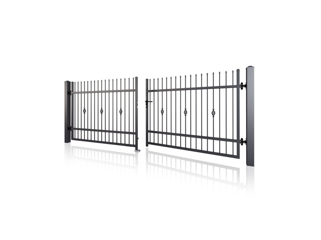 Dvoukřídlá brána STYLE 10-22, kovaná, bezúdržbová, na míru (šířka 1500–6000 mm, výška 1100–1750 mm), černá RAL 9005 matná