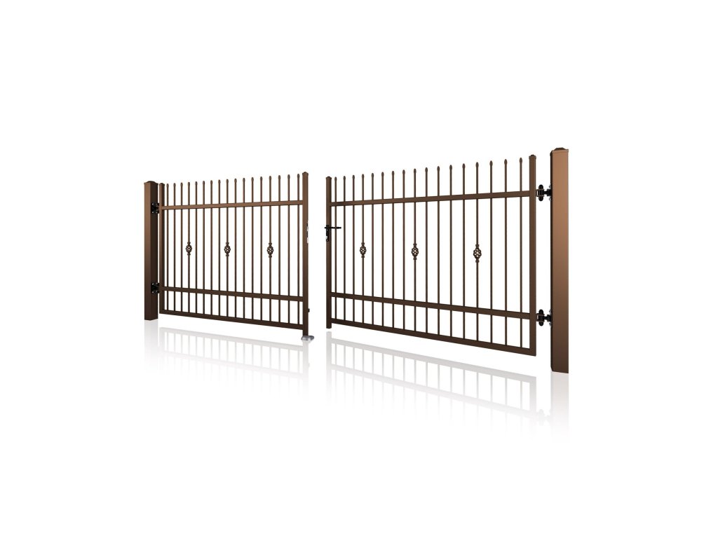 Dvoukřídlá brána STYLE 10-22, kovaná, bezúdržbová, na míru (šířka 1500–6000 mm, výška 1100–1750 mm), hnědá RAL 8014 matná
