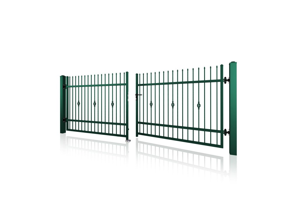 Dvoukřídlá brána STYLE 10-22, kovaná, bezúdržbová, na míru (šířka 1500–6000 mm, výška 1100–1750 mm), zelená RAL 6005 matná