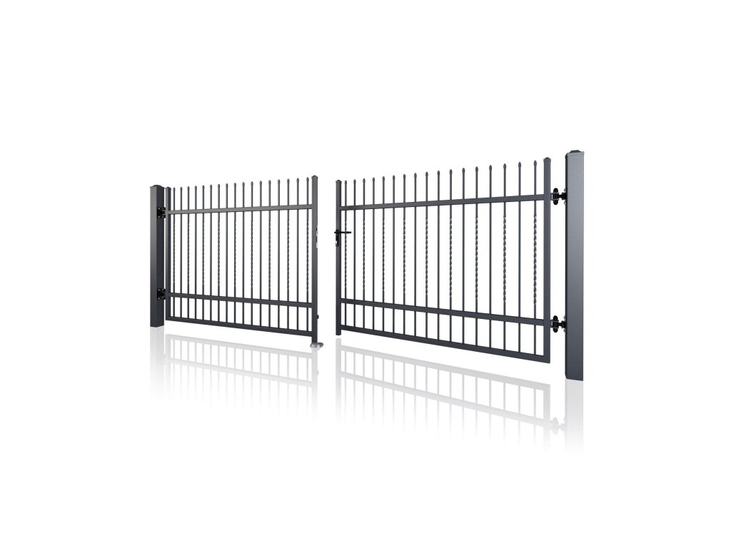 Dvoukřídlá brána STYLE 10-23, kovaná, bezúdržbová, na míru (šířka 1500–6000 mm, výška 1100–1750 mm), černá struktura RAL 9005
