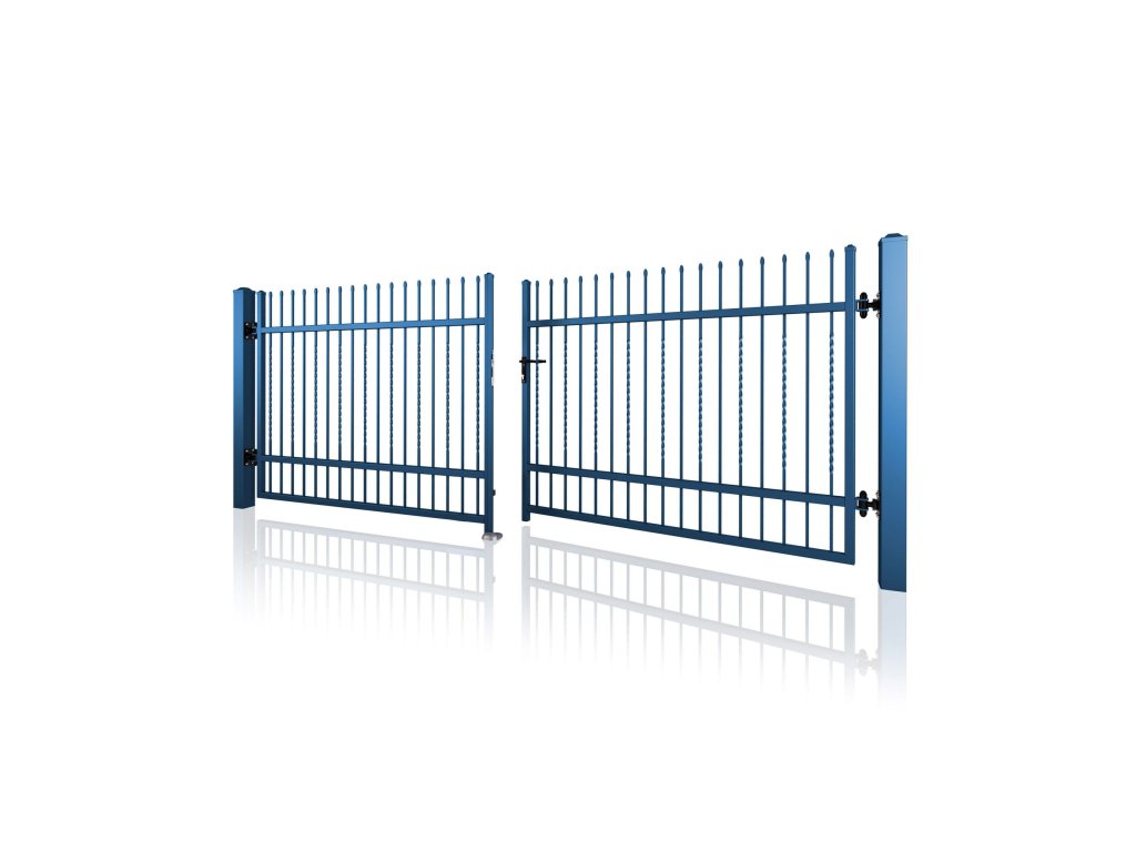 Dvoukřídlá brána STYLE 10-23, kovaná, bezúdržbová, na míru (šířka 1500–6000 mm, výška 1100–1750 mm), modrá RAL 5010 matná