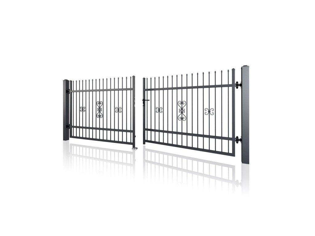 Dvoukřídlá brána STYLE 10-24, kovaná, bezúdržbová, na míru (šířka 1500–6000 mm, výška 1100–1750 mm), černá struktura RAL 9005