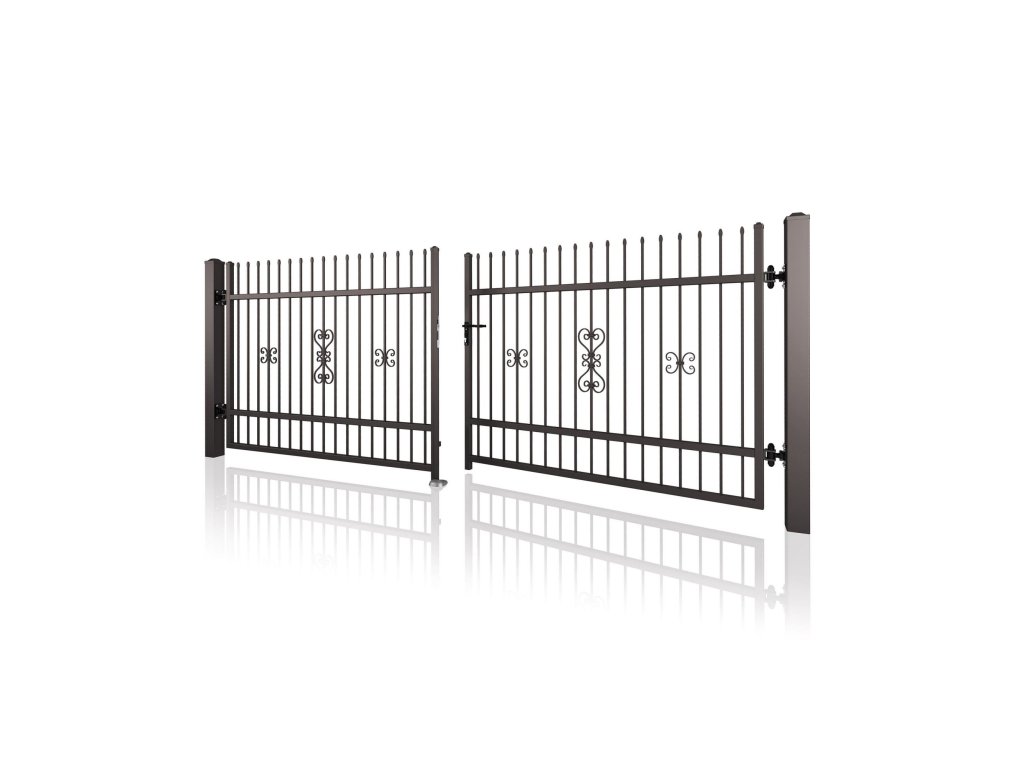 Dvoukřídlá brána STYLE 10-24, kovaná, bezúdržbová, na míru (šířka 1500–6000 mm, výška 1100–1750 mm), hnědá RAL 8019 matná