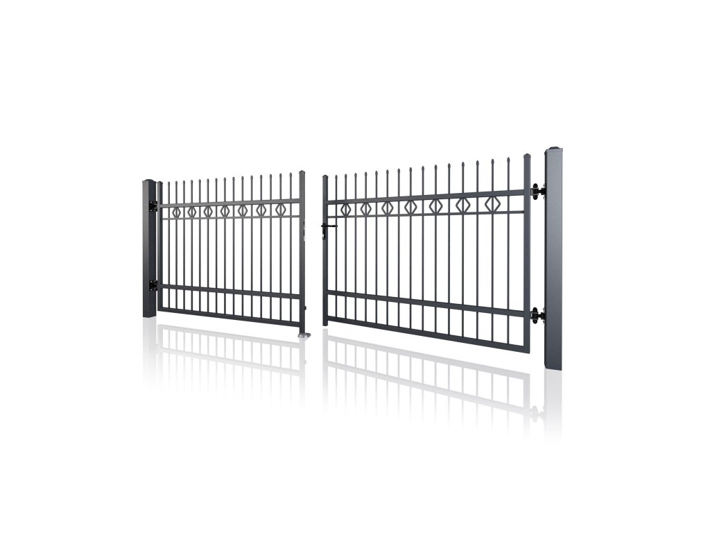 Dvoukřídlá brána STYLE 10-25, kovaná, bezúdržbová, na míru (šířka 1500–6000 mm, výška 1000–1750 mm), černá struktura RAL 9005
