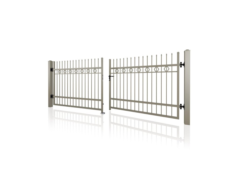 Dvoukřídlá brána STYLE 10-25, kovaná, bezúdržbová, na míru (šířka 1500–6000 mm, výška 1000–1750 mm), šedá RAL 7030 matná