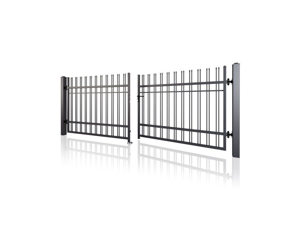 Dvoukřídlá brána STYLE 10-26, kovaná, bezúdržbová, na míru (šířka 1500–6000 mm, výška 1000–1750 mm), černá RAL 9005 matná