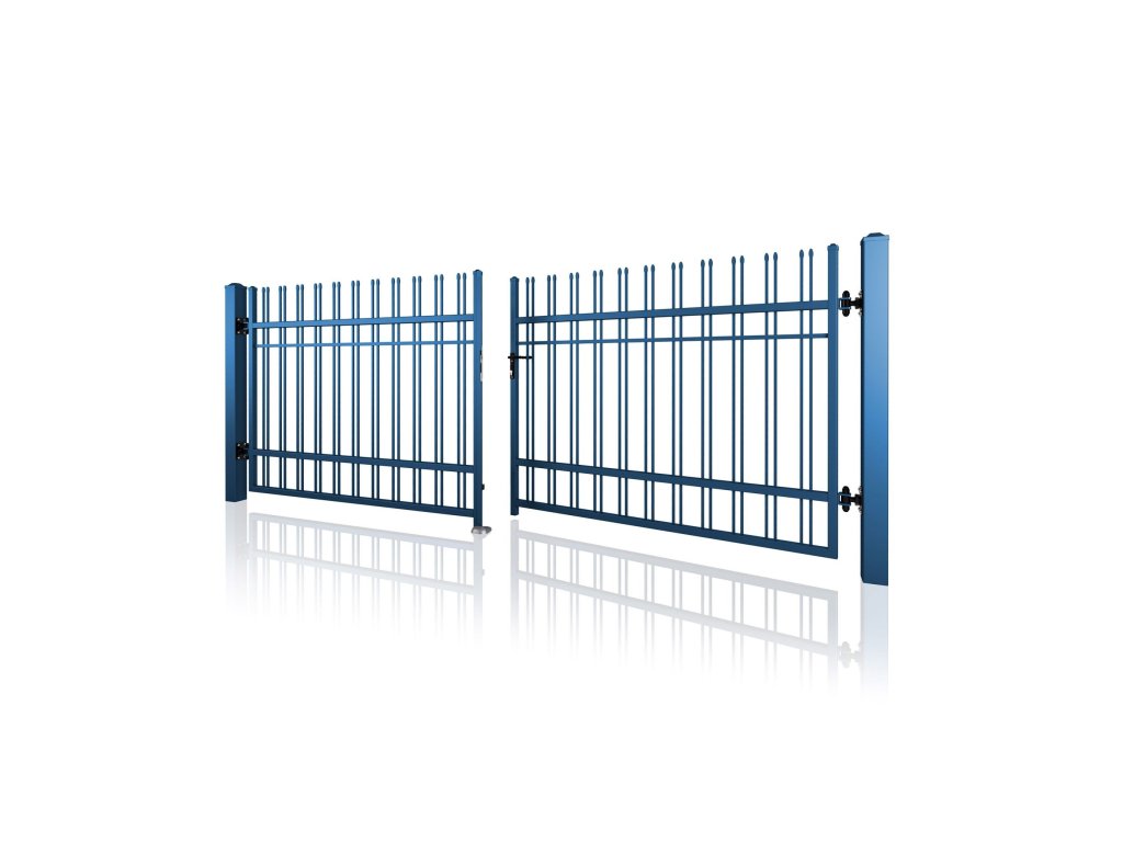 Dvoukřídlá brána STYLE 10-26, kovaná, bezúdržbová, na míru (šířka 1500–6000 mm, výška 1000–1750 mm), modrá RAL 5010 matná