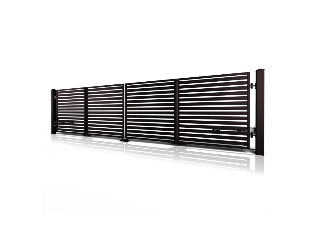 Dvoukřídlá skládací brána 10-104, ocelová, bezúdržbová, na míru (šířka 1200 - 6000 mm, výška 1000 - 2000 mm), hnědá RAL 8019 matná