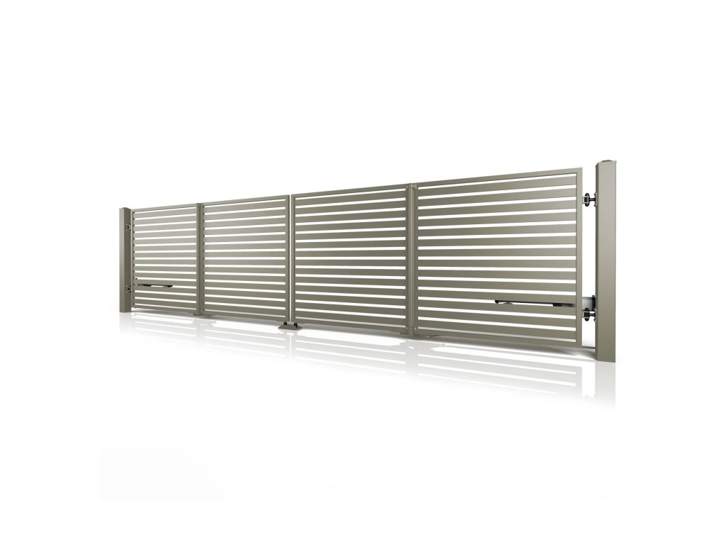 Dvoukřídlá skládací brána 10-104, ocelová, bezúdržbová, na míru (šířka 1200 - 6000 mm, výška 1000 - 2000 mm), šedá RAL 7030 matná