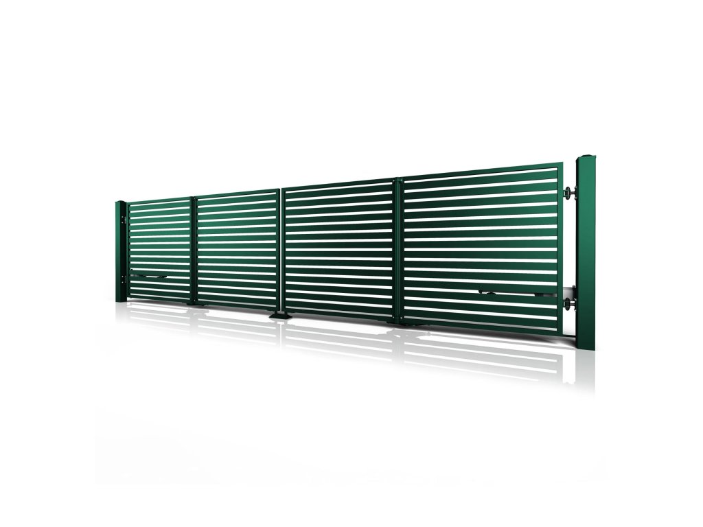 Dvoukřídlá skládací brána 10-104, ocelová, bezúdržbová, na míru (šířka 1200 - 6000 mm, výška 1000 - 2000 mm), zelená RAL 6005 matná