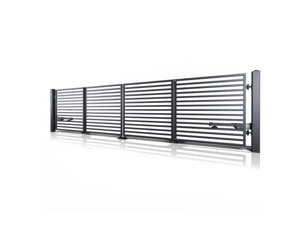 Dvoukřídlá skládací brána 10-105, ocelová, bezúdržbová, na míru (šířka 1200 - 6000 mm, výška 1000 - 2050 mm), antracit RAL 7016 matná