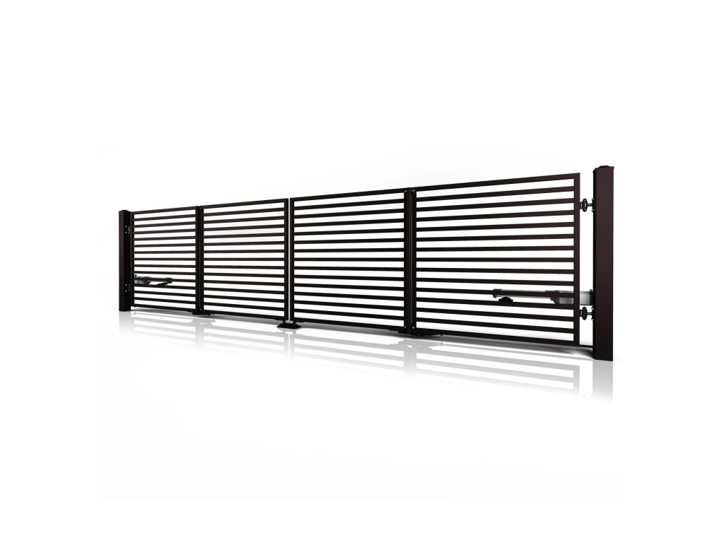 Dvoukřídlá skládací brána 10-105, ocelová, bezúdržbová, na míru (šířka 1200 - 6000 mm, výška 1000 - 2050 mm), hnědá RAL 8019 matná