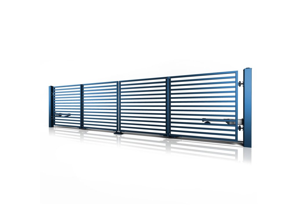 Dvoukřídlá skládací brána 10-105, ocelová, bezúdržbová, na míru (šířka 1200 - 6000 mm, výška 1000 - 2050 mm), modrá 5010 matná