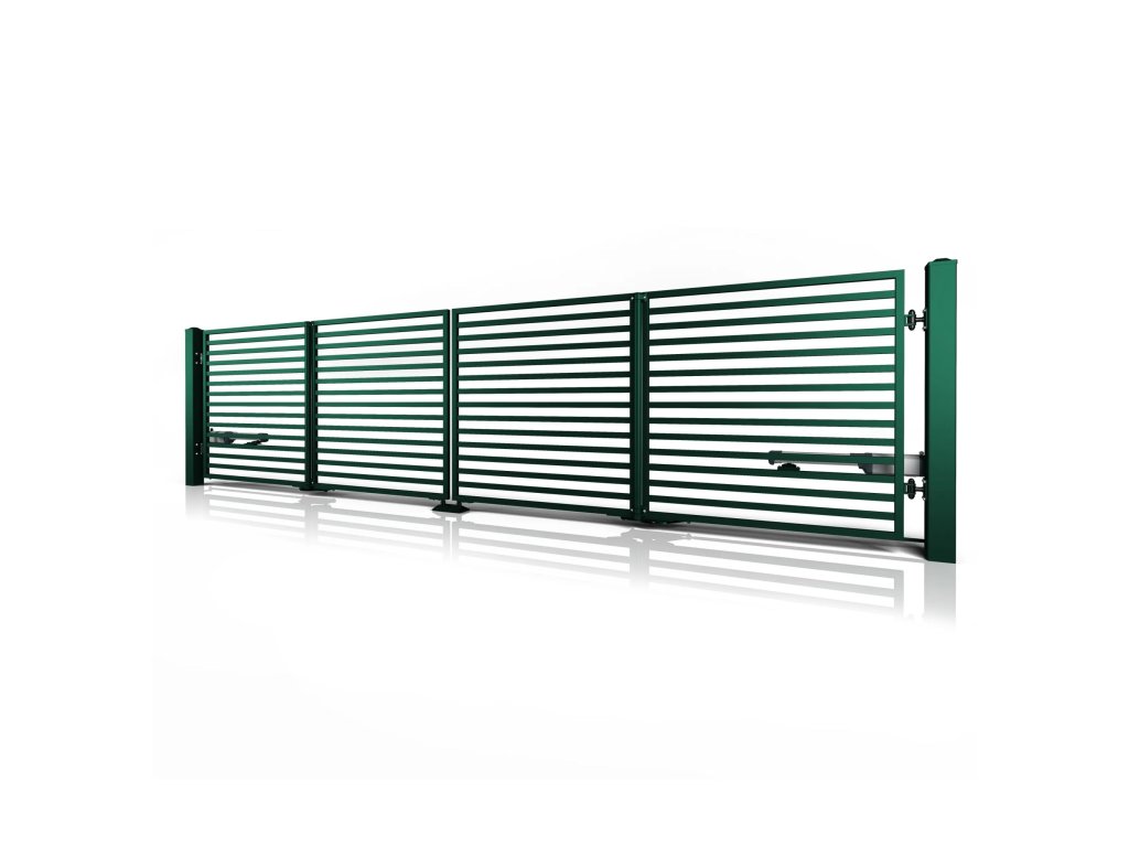 Dvoukřídlá skládací brána 10-105, ocelová, bezúdržbová, na míru (šířka 1200 - 6000 mm, výška 1000 - 2050 mm), zelená RAL 6005 matná