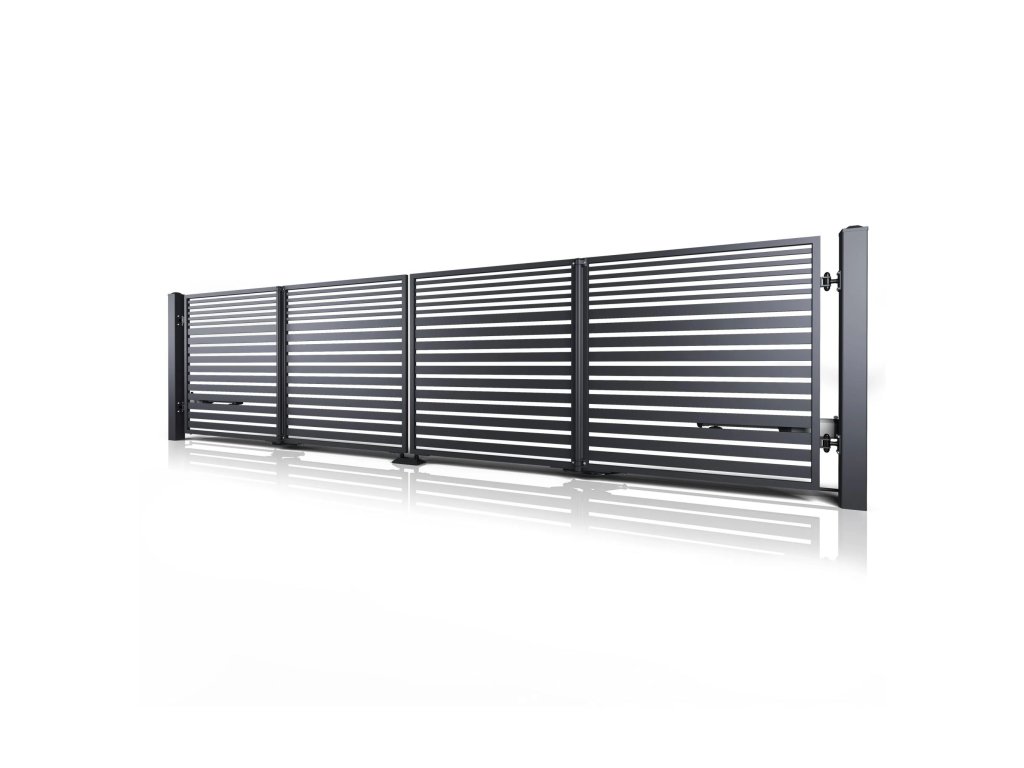 Dvoukřídlá skládací brána 10-106, ocelová, bezúdržbová, na míru (šířka 1200 - 6000 mm, výška 1000 - 2000 mm), antracit RAL 7016 matná