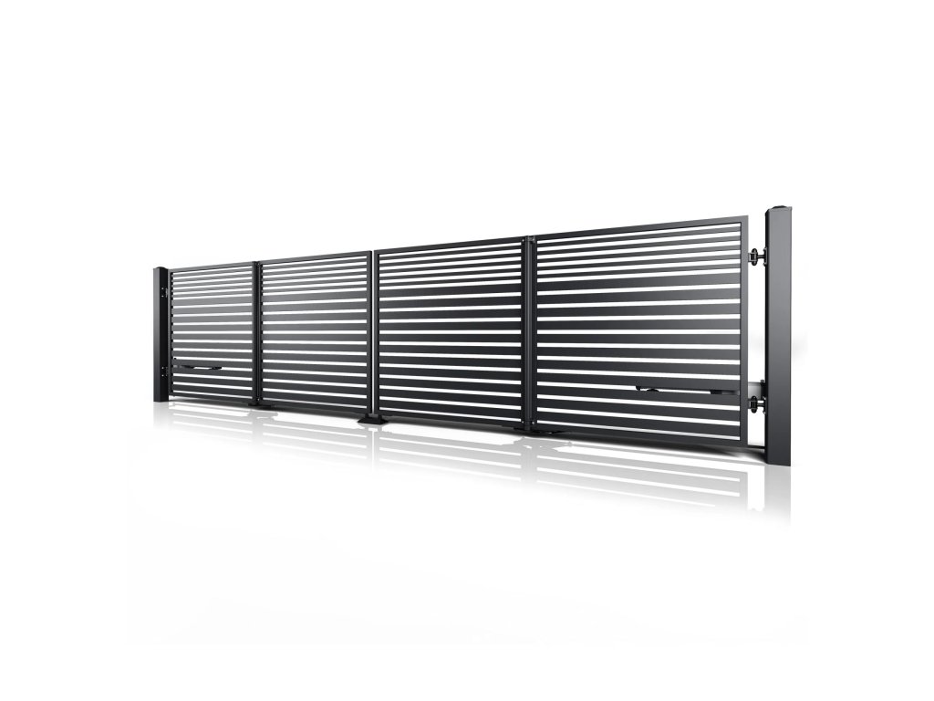 Dvoukřídlá skládací brána 10-106, ocelová, bezúdržbová, na míru (šířka 1200 - 6000 mm, výška 1000 - 2000 mm), černá RAL 9005 matná