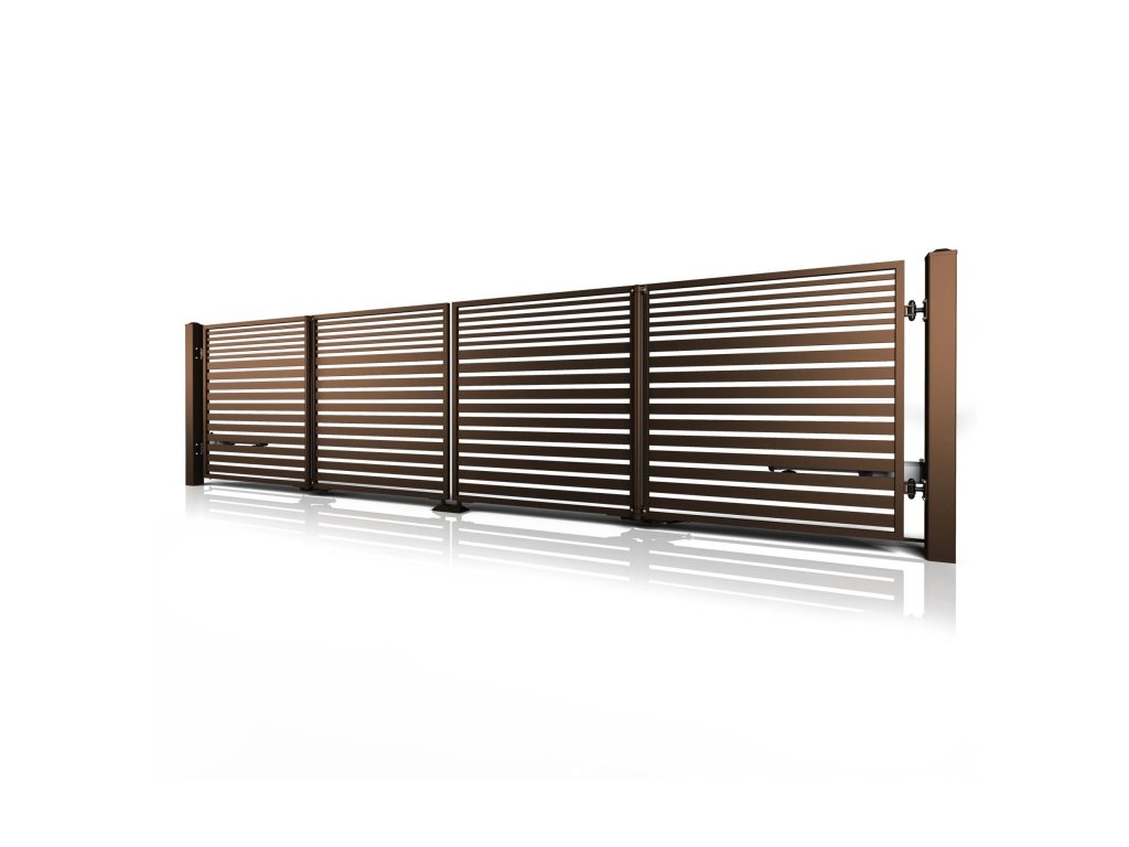 Dvoukřídlá skládací brána 10-106, ocelová, bezúdržbová, na míru (šířka 1200 - 6000 mm, výška 1000 - 2000 mm), hnědá RAL 8014 matná