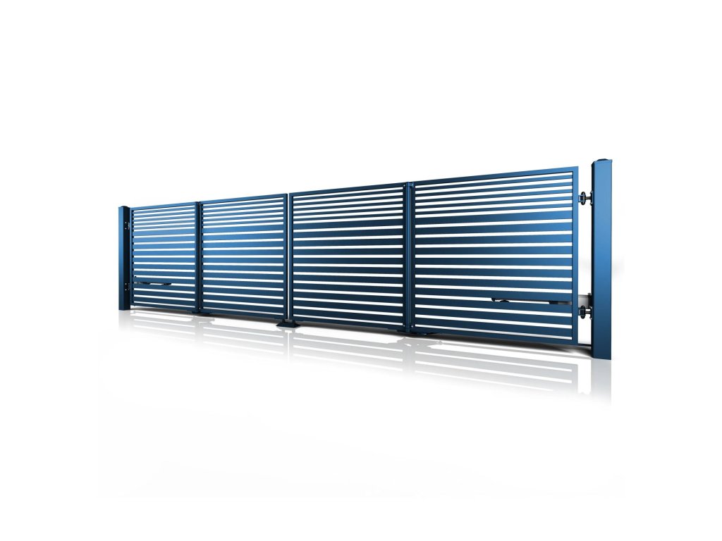 Dvoukřídlá skládací brána 10-106, ocelová, bezúdržbová, na míru (šířka 1200 - 6000 mm, výška 1000 - 2000 mm), modrá 5010 matná