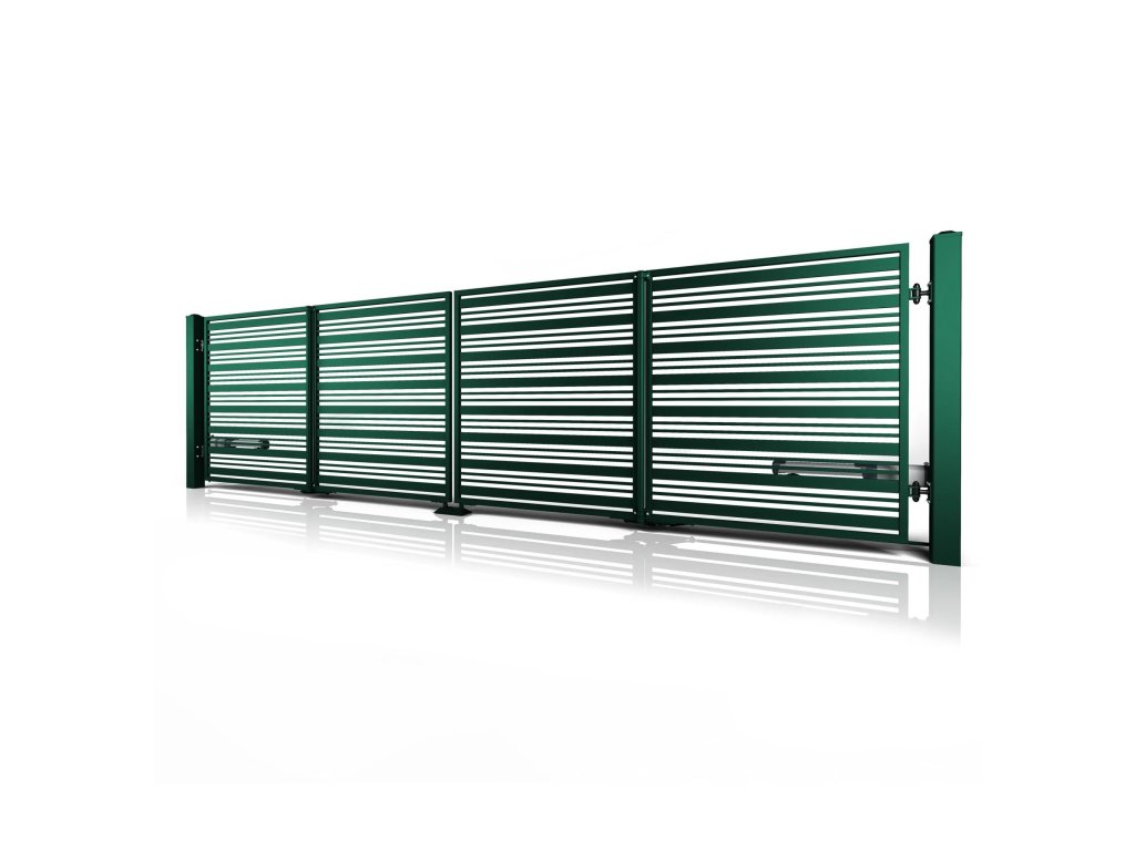 Dvoukřídlá skládací brána 10-107, ocelová, bezúdržbová, na míru (šířka 1200 - 6000 mm, výška 1000 - 2000 mm), zelená RAL 6005 matná