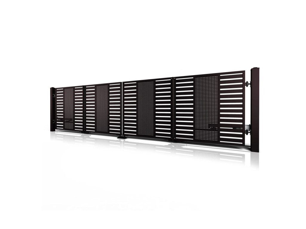 Dvoukřídlá skládací brána 10-108, ocelová, bezúdržbová, na míru (šířka 1200 - 6000 mm, výška 1000 - 2000 mm), hnědá RAL 8019 matná