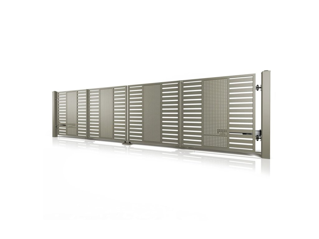 Dvoukřídlá skládací brána 10-108, ocelová, bezúdržbová, na míru (šířka 1200 - 6000 mm, výška 1000 - 2000 mm), šedá RAL 7030 matná