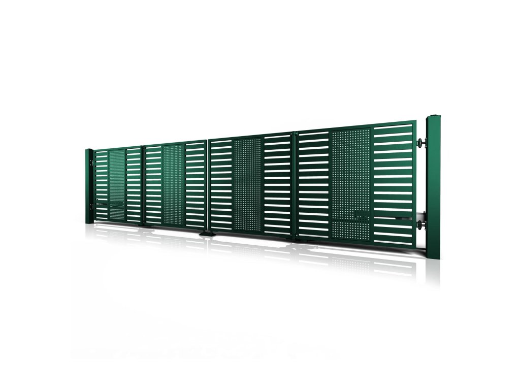 Dvoukřídlá skládací brána 10-108, ocelová, bezúdržbová, na míru (šířka 1200 - 6000 mm, výška 1000 - 2000 mm), zelená RAL 6005 matná
