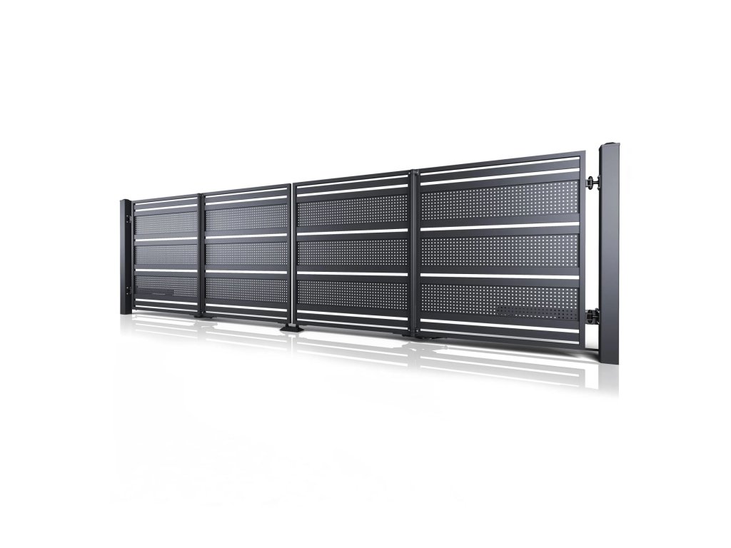 Dvoukřídlá skládací brána 10-109, ocelová, bezúdržbová, na míru (šířka 1200 - 6000 mm, výška 1200 - 2100 mm), barva na přání