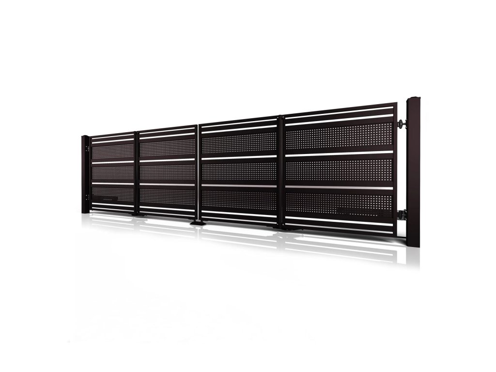 Dvoukřídlá skládací brána 10-109, ocelová, bezúdržbová, na míru (šířka 1200 - 6000 mm, výška 1200 - 2100 mm), hnědá RAL 8019 matná