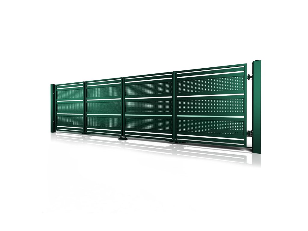 Dvoukřídlá skládací brána 10-109, ocelová, bezúdržbová, na míru (šířka 1200 - 6000 mm, výška 1200 - 2100 mm), zelená RAL 6005 matná