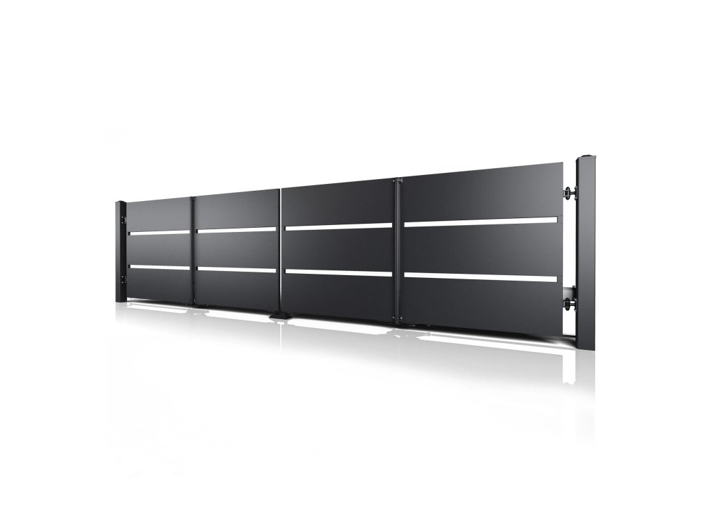 Dvoukřídlá skládací brána 10-110, ocelová, bezúdržbová, na míru (šířka 1200 - 6000 mm, výška 1000 - 2000 mm), černá struktura RAL 9005