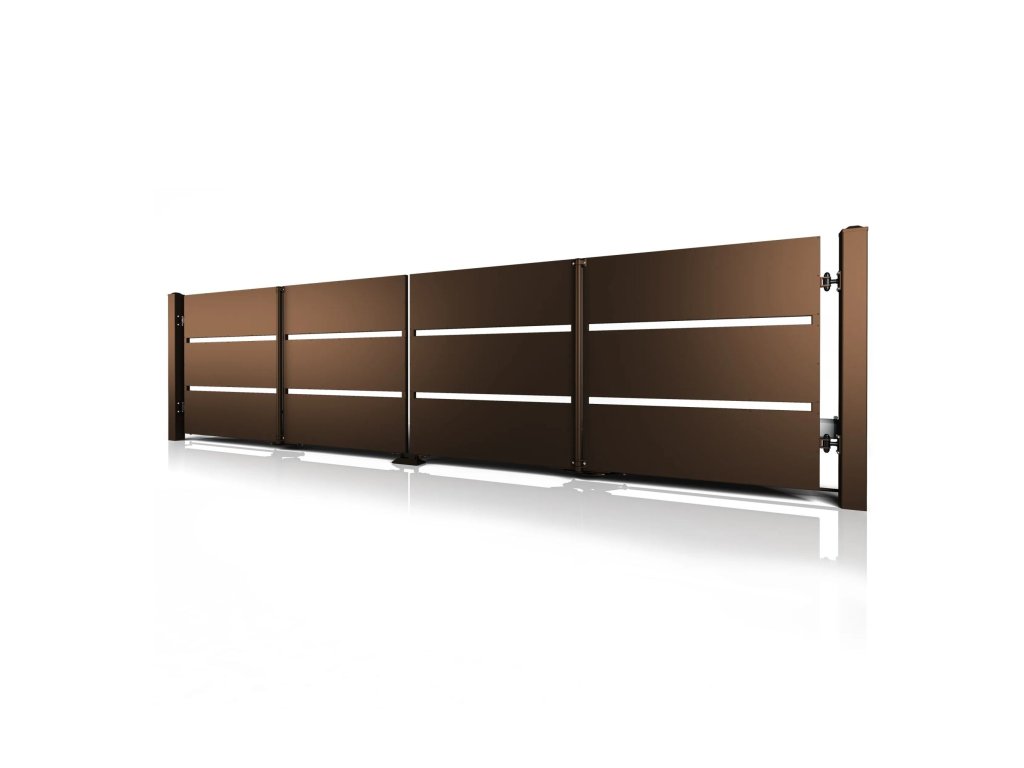 Dvoukřídlá skládací brána 10-110, ocelová, bezúdržbová, na míru (šířka 1200 - 6000 mm, výška 1000 - 2000 mm), hnědá RAL 8014 matná