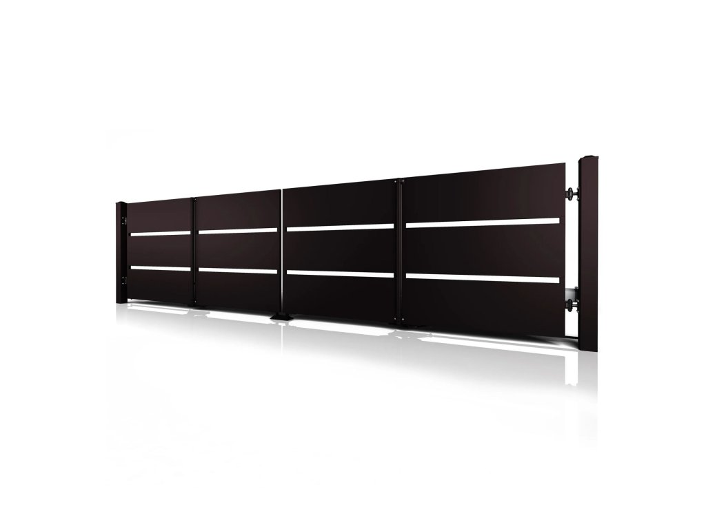 Dvoukřídlá skládací brána 10-110, ocelová, bezúdržbová, na míru (šířka 1200 - 6000 mm, výška 1000 - 2000 mm), hnědá RAL 8019 matná