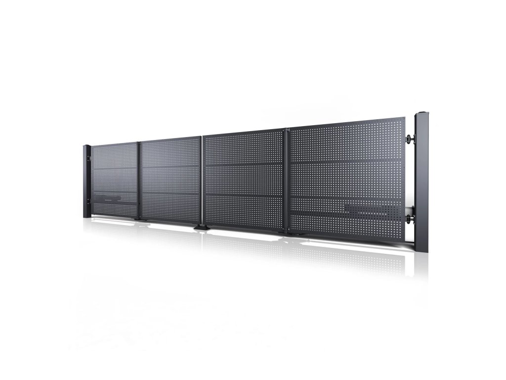 Dvoukřídlá skládací brána 10-111, ocelová, bezúdržbová, na míru (šířka 1200 - 5500 mm, výška 1000 - 2000 mm), barva na přání