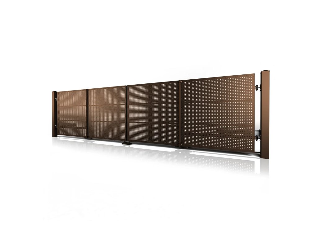 Dvoukřídlá skládací brána 10-111, ocelová, bezúdržbová, na míru (šířka 1200 - 5500 mm, výška 1000 - 2000 mm), hnědá RAL 8014 matná