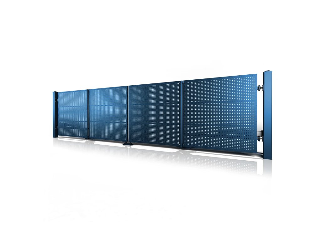 Dvoukřídlá skládací brána 10-111, ocelová, bezúdržbová, na míru (šířka 1200 - 5500 mm, výška 1000 - 2000 mm), modrá 5010 matná