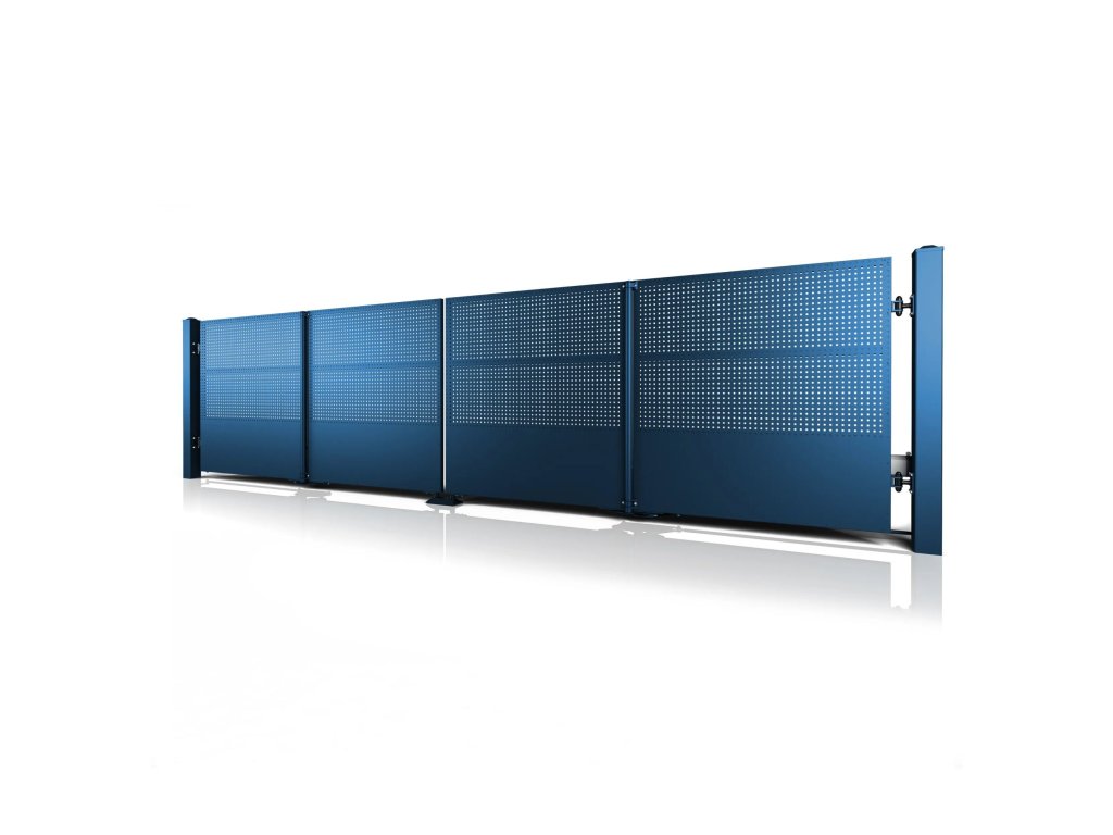 Dvoukřídlá skládací brána 10-112, ocelová, bezúdržbová, na míru (šířka 1200 - 6000 mm, výška 1000 - 2000 mm), modrá 5010 matná
