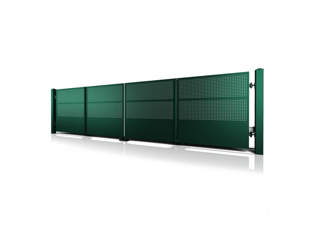 Dvoukřídlá skládací brána 10-112, ocelová, bezúdržbová, na míru (šířka 1200 - 6000 mm, výška 1000 - 2000 mm), zelená RAL 6005 matná
