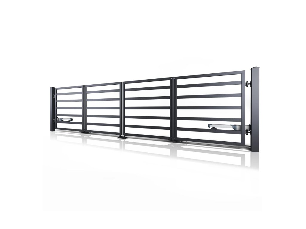 Dvoukřídlá skládací brána 10-114, ocelová, bezúdržbová, na míru (šířka 1200 - 6000 mm, výška 750 - 2000 mm), barva na přání
