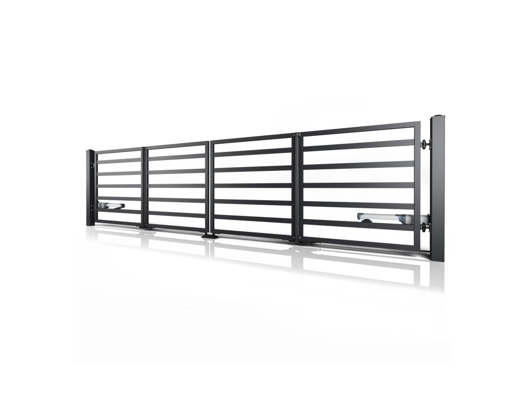 Dvoukřídlá skládací brána 10-114, ocelová, bezúdržbová, na míru (šířka 1200 - 6000 mm, výška 750 - 2000 mm), černá struktura RAL 9005