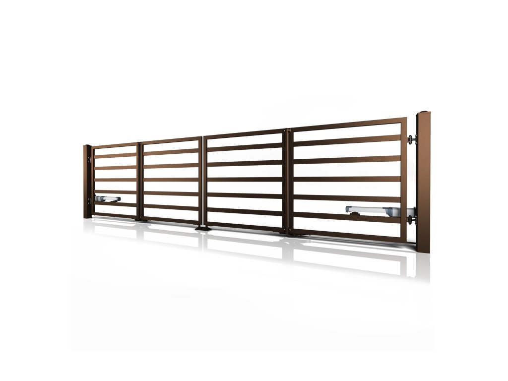 Dvoukřídlá skládací brána 10-114, ocelová, bezúdržbová, na míru (šířka 1200 - 6000 mm, výška 750 - 2000 mm), hnědá RAL 8014 matná